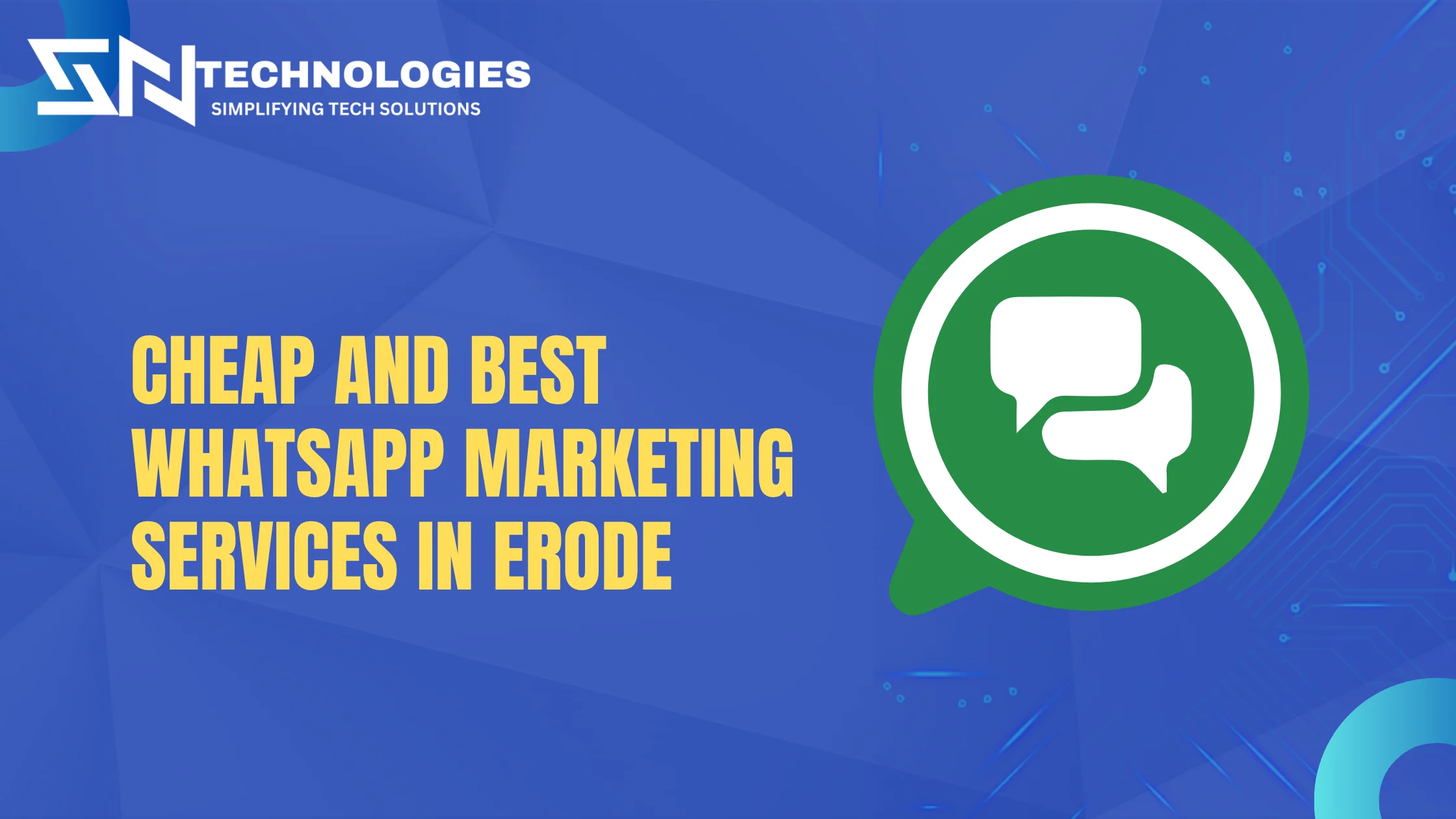 Use the cheap and best WhatsApp marketing services in Erode from SN Technologies to engage, communicate, and connect with your audience like never before. Our creative and reasonably priced solutions enable companies to take advantage of instant messaging’s ability...